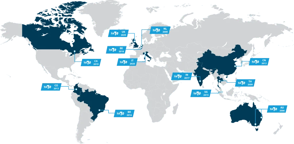 To70’s international expansion has always followed a clear principle: grow globally, stay grounded locally. As we established offices across Europe, Asia, Australia, and the Americas, each location was built on local talent and insight, backed by the strength of our international network.